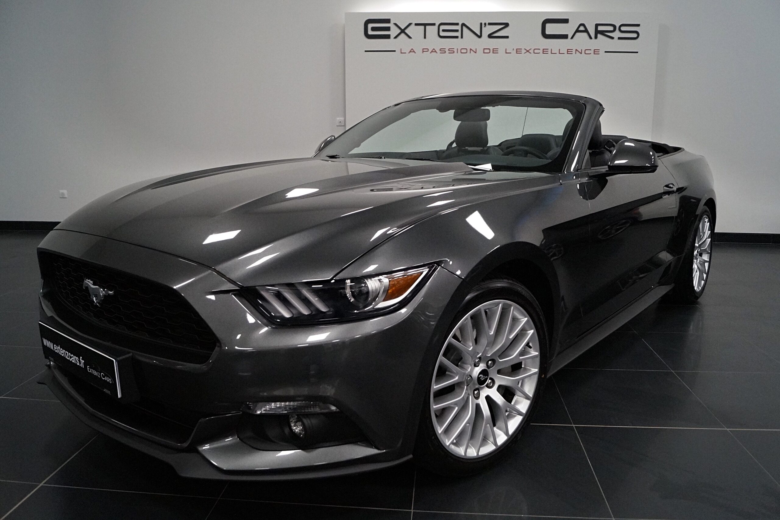 Ford MUSTANG Cabriolet 2.3 Ecoboost Prenium développant 317 CV (21cv), mise en circulation le 29/04/2016 de couleur Gris Magnetic. Associée à une boite à vitesse six rapports mécanique, optimisez le plaisir en gardant le contrôle par toute circonstance. Cette Mustang Convertible distille beaucoup de plaisir à ses occupants tout en offrant un rapport prix/plaisir imbattable. En particulier sa face avant qui s’inspire d’un requin. Le regard est impressionnant, la position de conduite est parfaite et on peut admirer devant soi le long capot bosselé.