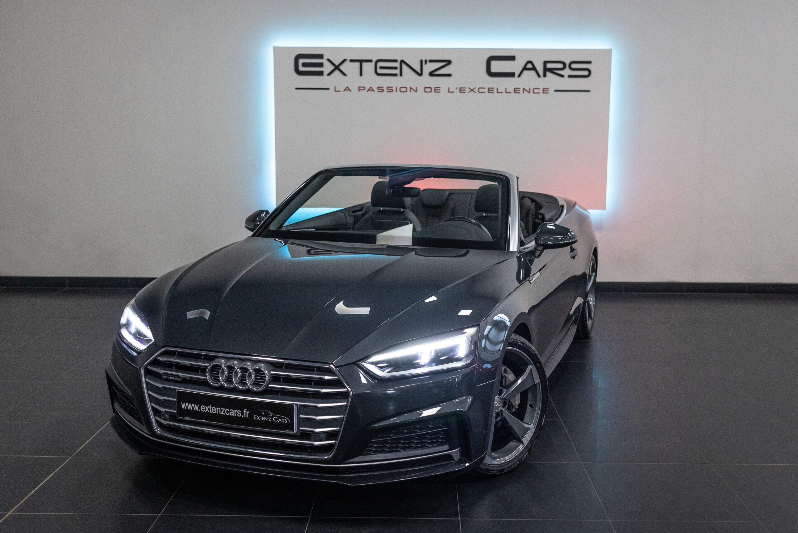 EXTEN’Z CARS vous propose cette magnifique AUDI A5 Cabriolet S-Liune 2.0 TFSI Quattro développant 252 CV (15cv) mise en circulation le 24/07/2017 de couleur Gris Manhatta Métallisée. Associée à une boite à vitesse automatique à double embrayage S-Tronic à 7 rapports. Mode Dynamic enclenché : la direction gagne en précision, l’amortissement devient plus rigide. L’Audi A5 est impeccablement finie, avec des ajustements parfaits et une incontestable qualité dans le choix des matériaux.