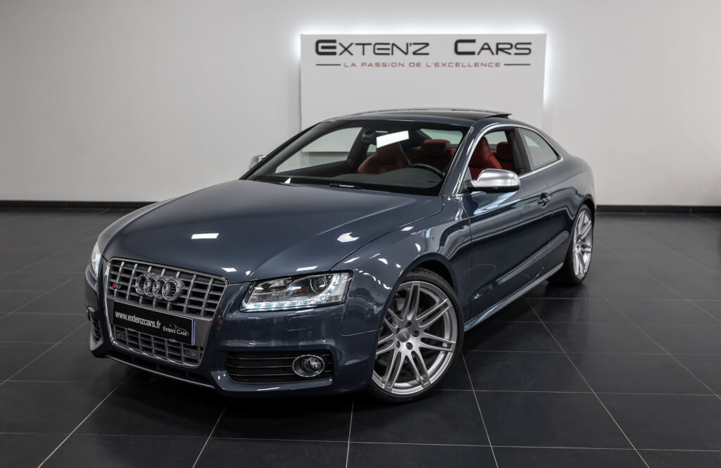 AUDI S5 Quattro 4.2 V8 FSI développant 355CV (26cv) mise en circulation le 20/05/2010 de couleur Gris Météore Nacré. Autant son comportement routier est parmi les meilleurs de sa catégorie et sa ligne fait l’unanimité, accompagné de son système Quattro synonyme d’un plaisir de conduite accru et d’une meilleure adhérence. Vous apprécierez sa puissance confortablement à bord d’un V8 envoutant.