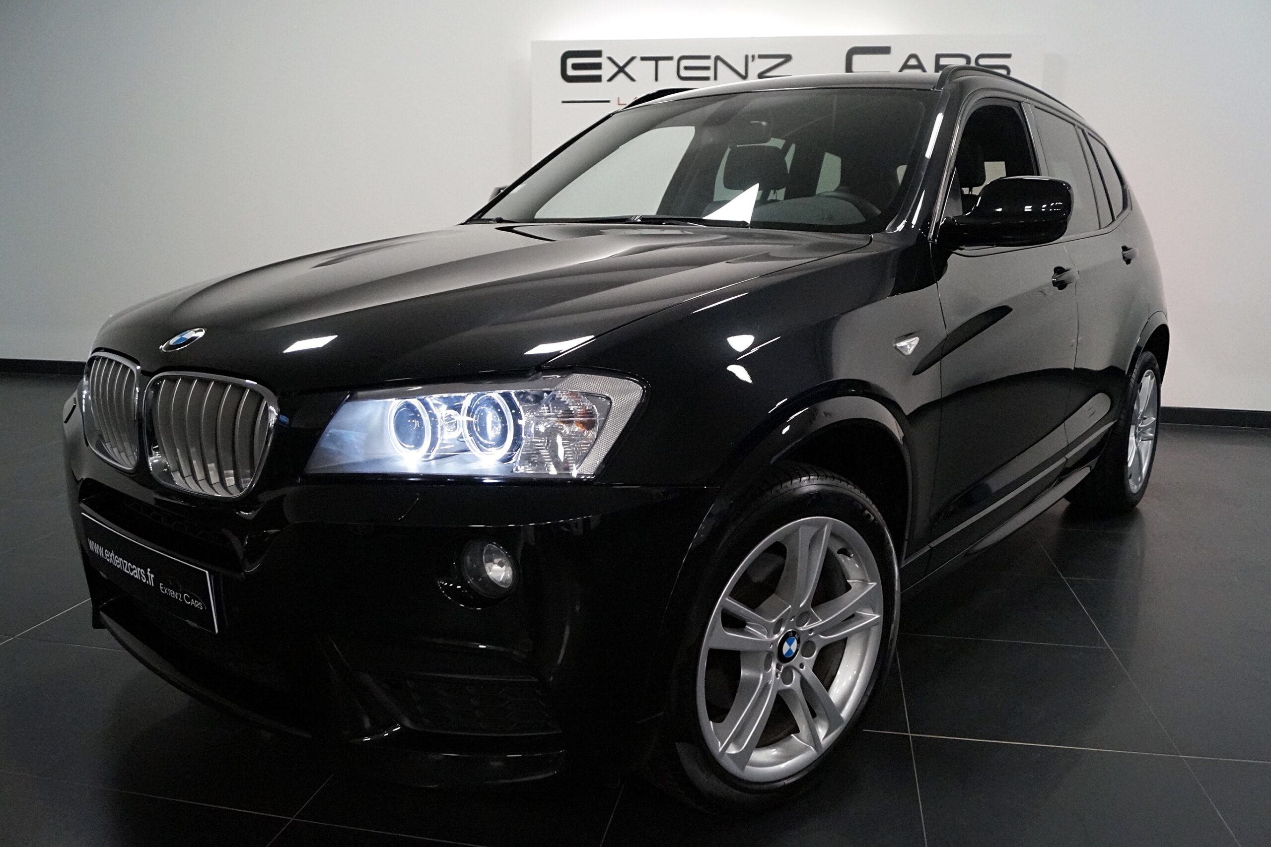 EXTEN’Z CARS vous propose ce magnifique BMW X3 (F25) Pack M Sport-Design X-Drive 30DA développant 258 CV (16cv), mise en circulation le 07/12/2012 de couleur Noir Saphir. Associée à une boite à vitesse huit rapports automatique, le huitième rapport réduit le régime à vitesse soutenue, ce qui profite aussi bien au confort qu’à la consommation, si vous préférez une conduite plus sportive, il lui suffit de passer en mode manuel pour disposer alors de huit rapports fixes. Autant son comportement routier est parmi les meilleurs de sa catégorie et sa ligne fait l’unanimité, accompagné de son système X-Drive synonyme d’un plaisir de conduite accru et d’une meilleure adhérence. Les sièges sport suffisamment enveloppants, le volant trois branches gainé de cuir et le pédalier en alu donnent le ton. Vous apprécierez également l’ensemble des équipements d’un véritable haut de gamme Pack M. Le pack extérieur M-Sport regroupe des pare-chocs plus marqués à l’avant comme à l’arrière. Le pack Sport M comprend également des sièges sport, un volant cuir perforé M et un ciel de pavillon noir.