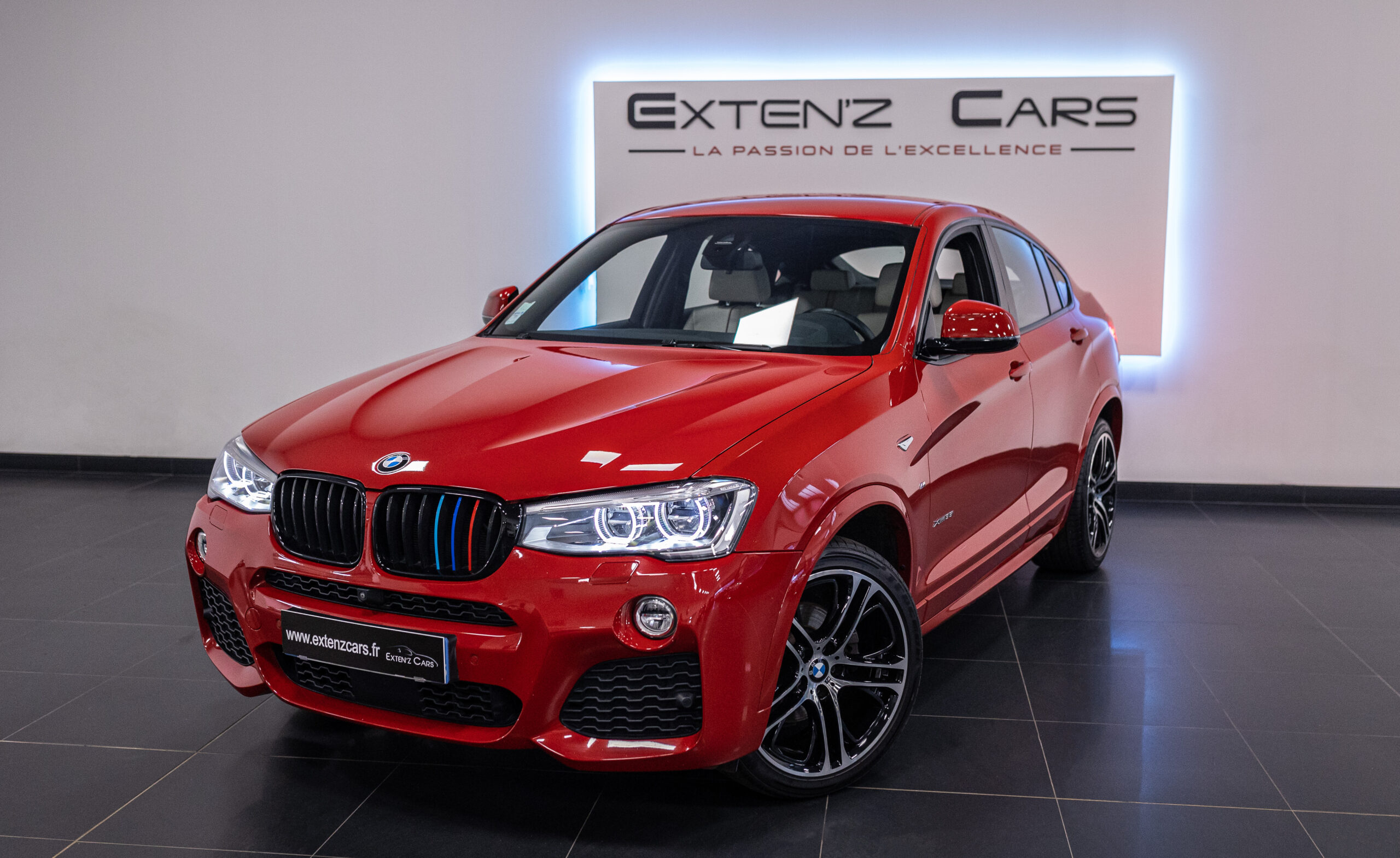EXTEN’Z CARS vous propose cette magnifique BMW X4 35i X-Drive Pack Sport M avec son fabuleux 3.0 six cylindres en ligne développant 306 CV (20cv), mise en circulation le 15/05/2014 de couleur Rouge Melbourne Méttalic. Associée à une boîte à 8 rapports automatique, si vous préférez une conduite plus sportive, il lui suffit de passer en mode manuel pour disposer alors des rapports fixes à l’aide des palettes de changement de vitesse au volant. Autant son comportement routier est parmi les meilleurs de sa catégorie et sa ligne fait l’unanimité, accompagné de son système X-Drive synonyme d’un plaisir de conduite accru et d’une meilleure adhérence. Vous apprécierez l’ensemble des équipements d’un véritable haut de gamme et sa puissance confortablement à bord d’un 6 cylindres envoûtant.