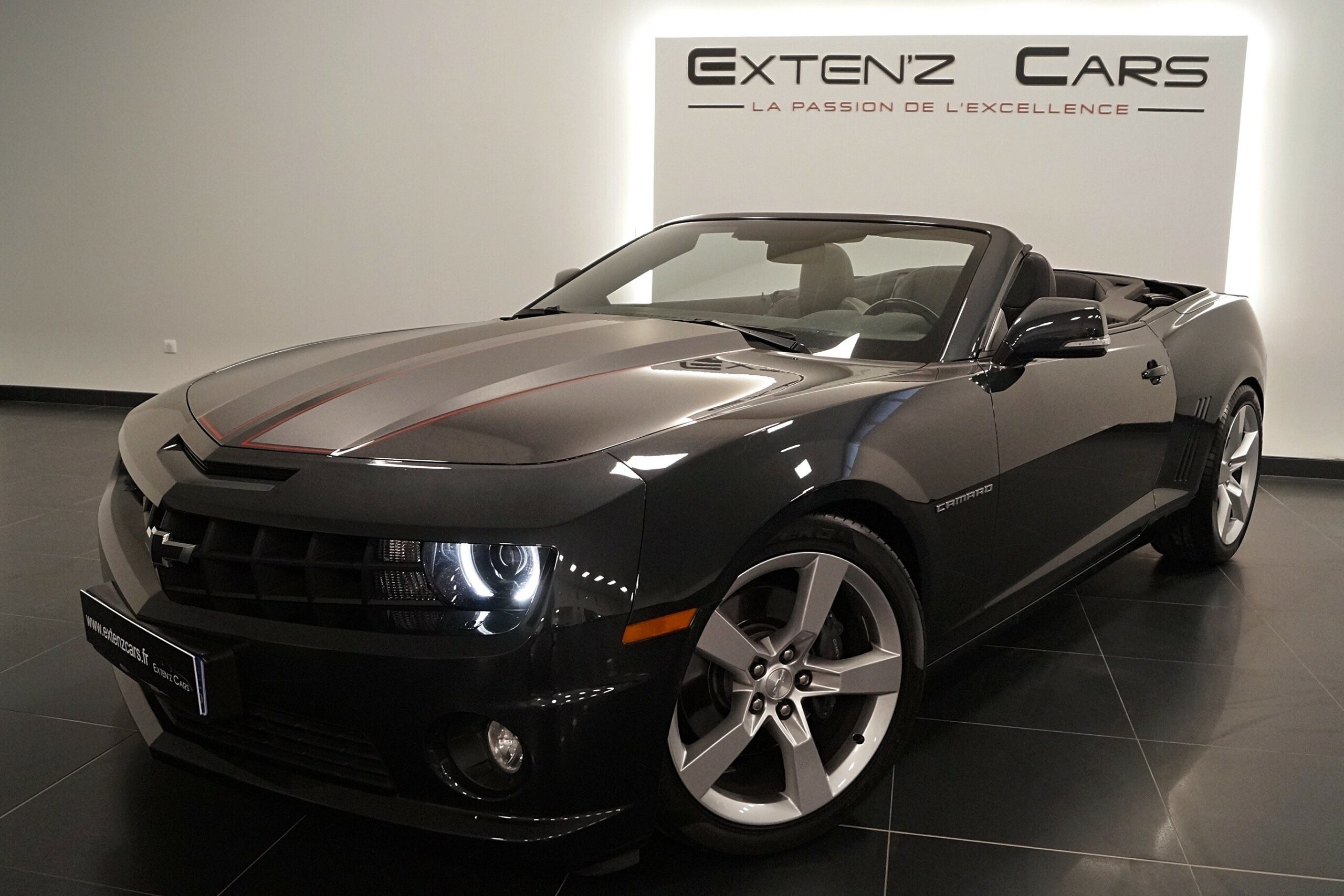 Chevrolet Camaro V Cabriolet avec son fantastique V8 6.2 Atmosphérique développant 405 CV (33cv), mise en circulation le 22/06/2012 de couleur Gris Ashen. Associée à une boite à vitesse automatique. Cette Camaro distille beaucoup de plaisir à ses occupants tout en offrant un rapport prix/plaisir. En particulier sa silhouette bodybuildée, la position de conduite est parfaite et on peut admirer devant soi le long capot bosselé. Prendre les commandes d’un tel engin, aussi imposant par le gabarit que par son histoire, génère des sensations extraordinaires.