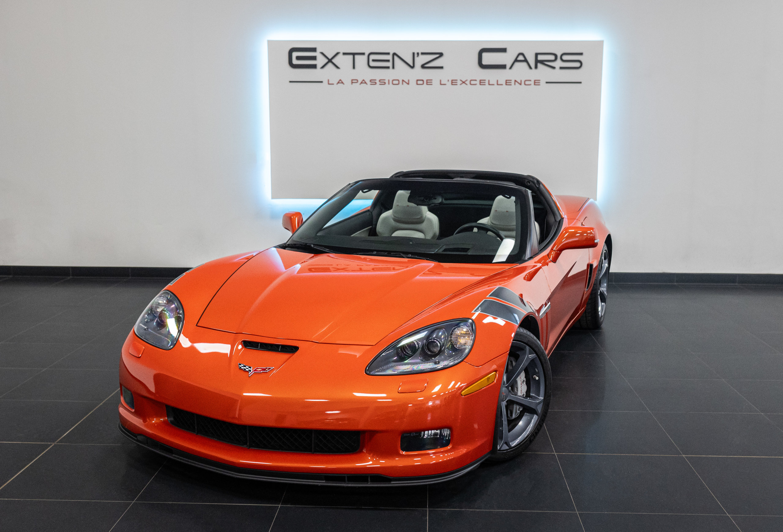 EXTEN’Z CARS vous propose cette magnifique Chevrolet Corvette C6 Grand Sport Targa avec son fantastique V8 6.2 LS3 Atmosphérique associé à une boîte mécanique à 6 vitesses développant 437 CV (35cv), mise en circulation le 27/10/2011, de couleur Orange Inferno. Cette Version GRAND SPORT se distingue par ses ouïes latérales ornées de chrome et ses << Peinture de Guerre >> sur les ailes avants. La Corvette C6 reste un engin diablement attachant. Son look, ses performances, son caractère affirmé et son comportement routier agile en font une alternative redoutable aux sportives européennes. Cette Corvette distille beaucoup de plaisir à ses occupants tout en offrant un rapport prix/plaisir. En particulier sa silhouette bodybuildée, la position de conduite est parfaite et on peut admirer devant soi le long capot bosselé. Prendre les commandes d’un tel engin, aussi imposant par le gabarit que par son histoire, génère des sensations extraordinaires.
