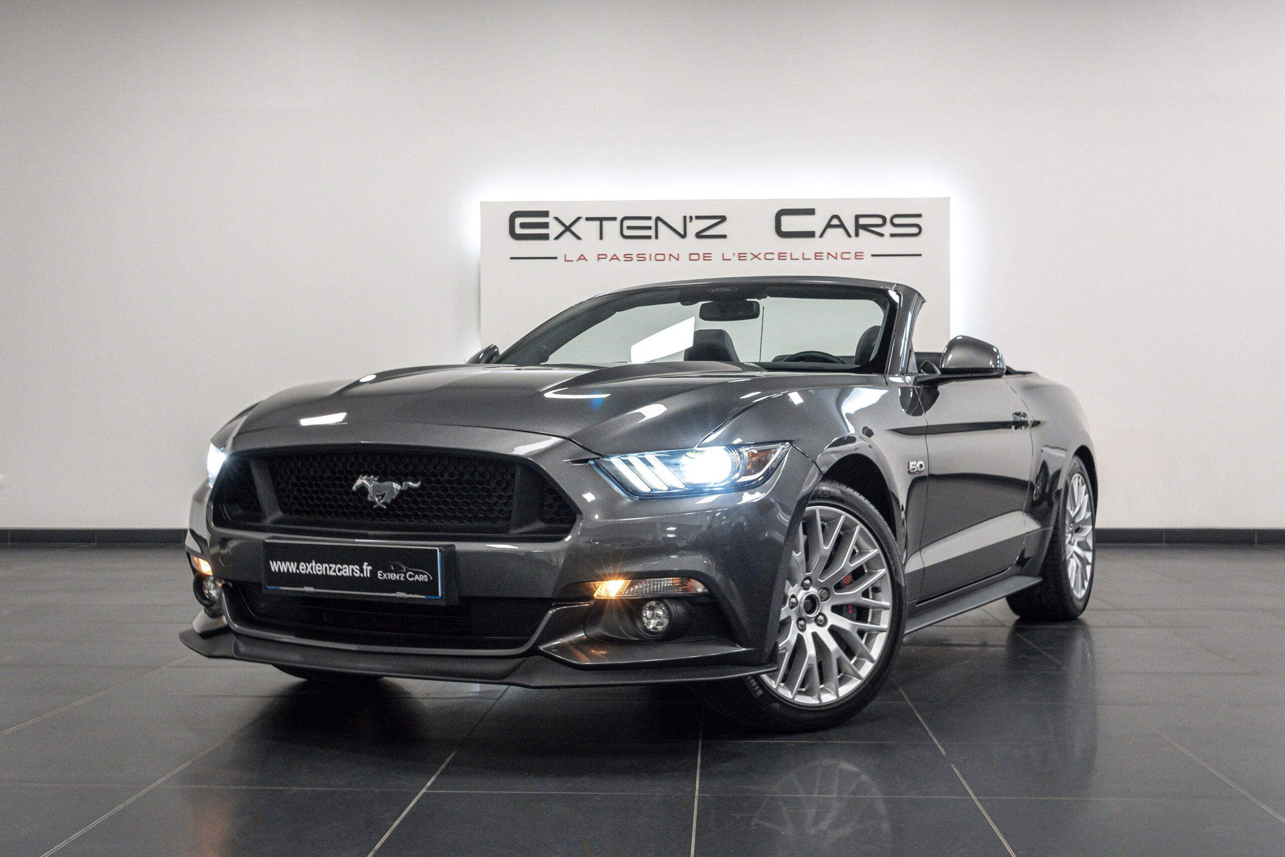 Ford Mustang GT Convertible avec son fantastique V8 5.0 Atmosphérique développant 421 CV (33cv), mise en circulation le 03/02/2016 de couleur Gris Magnetic. Associée à une boite à vitesse automatique. Cette MUSTANG distille beaucoup de plaisir à ses occupants tout en offrant un rapport prix/plaisir. En particulier sa silhouette bodybuildée, la position de conduite est parfaite et on peut admirer devant soi le long capot bosselé. Prendre les commandes d’un tel engin, aussi imposant par le gabarit que par son histoire, génère des sensations extraordinaires.
