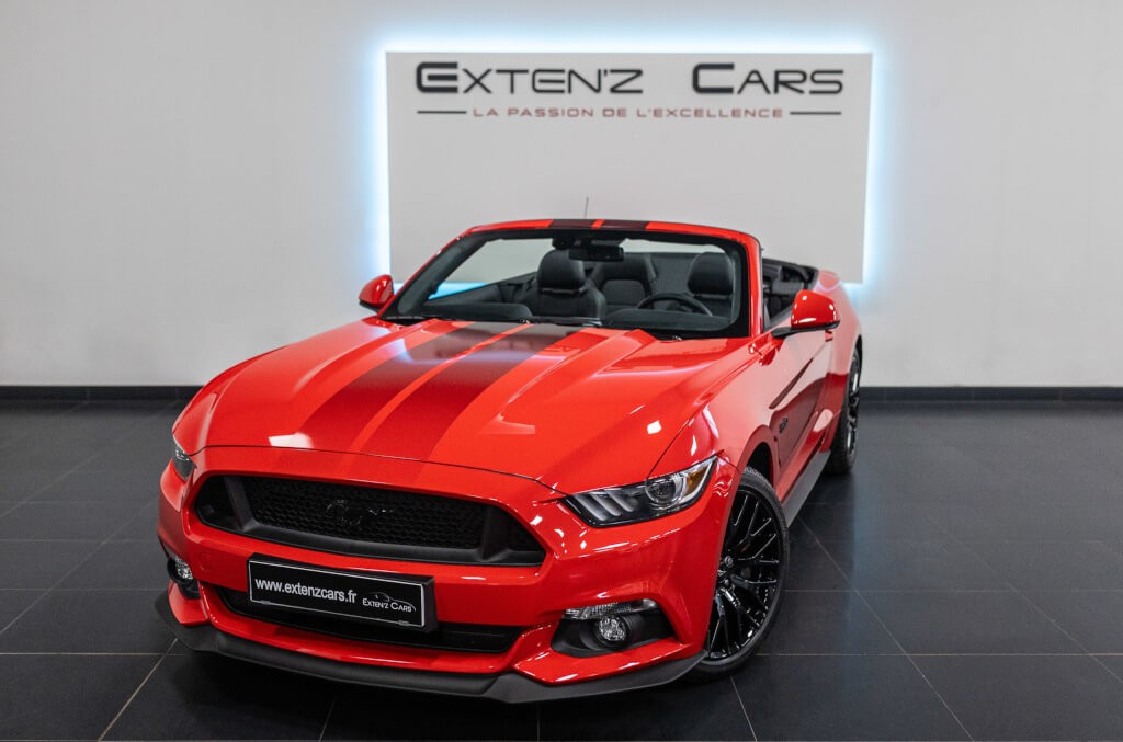 EXTEN’Z CARS vous propose cette séduisante Ford Mustang GT Cabriolet avec son fantastique V8 5.0 Atmosphérique développant 421 CV (33cv), mise en circulation le 11/04/2017 de couleur Rouge Racing. Associée à une boite à vitesse automatique, Cette MUSTANG distille beaucoup de plaisir à ses occupants tout en offrant un rapport prix/plaisir. En particulier sa silhouette bodybuildée, la position de conduite est parfaite et on peut admirer devant soi le long capot bosselé. Prendre les commandes d’un tel engin, aussi imposant par le gabarit que par son histoire, génère des sensations extraordinaires.