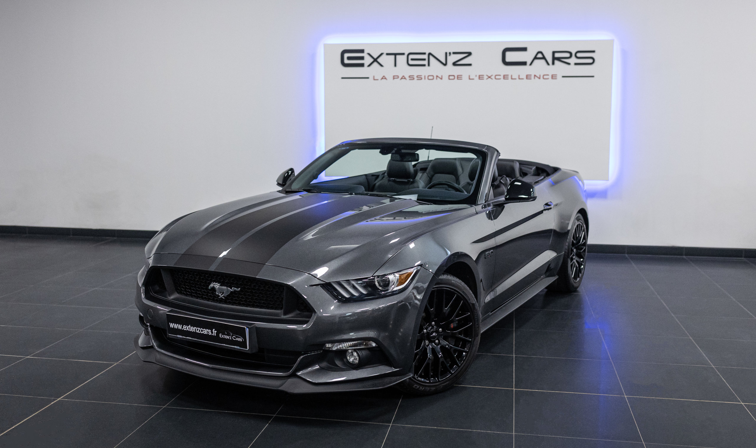 EXTEN’Z CARS vous propose cette séduisante Ford Mustang GT Cabriolet avec son fantastique V8 5.0 Atmosphérique développant 421 CV (33cv), mise en circulation le 15/03/2017 de couleur Gris Magnetic. Cette MUSTANG distille beaucoup de plaisir à ses occupants tout en offrant un rapport prix/plaisir. En particulier sa silhouette bodybuildée, la position de conduite est parfaite et on peut admirer devant soi le long capot bosselé. Prendre les commandes d’un tel engin, aussi imposant par le gabarit que par son histoire, génère des sensations extraordinaires.