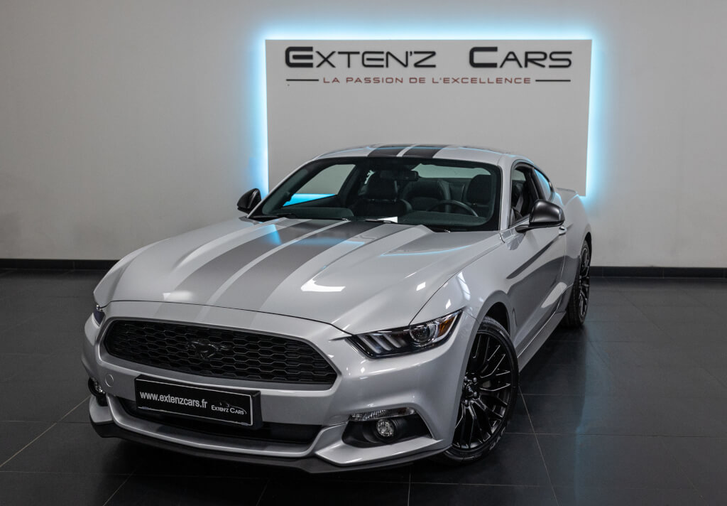 EXTEN’Z CARS vous propose cette séduisante Ford MUSTANG Fastback 2.3 Ecoboost développant 317 CV (21cv), mise en circulation le 21/03/2016 de couleur Ingot Silver Metallic. Cette Mustang Fastback distille beaucoup de plaisir à ses occupants tout en offrant un rapport prix/plaisir imbattable. En particulier sa face avant qui s’inspire d’un requin. Le regard est impressionnant, la position de conduite est parfaite et on peut admirer devant soi le long capot bosselé. Prendre les commandes d’un tel engin, aussi imposant par le gabarit que par son histoire, génère des sensations extraordinaires.