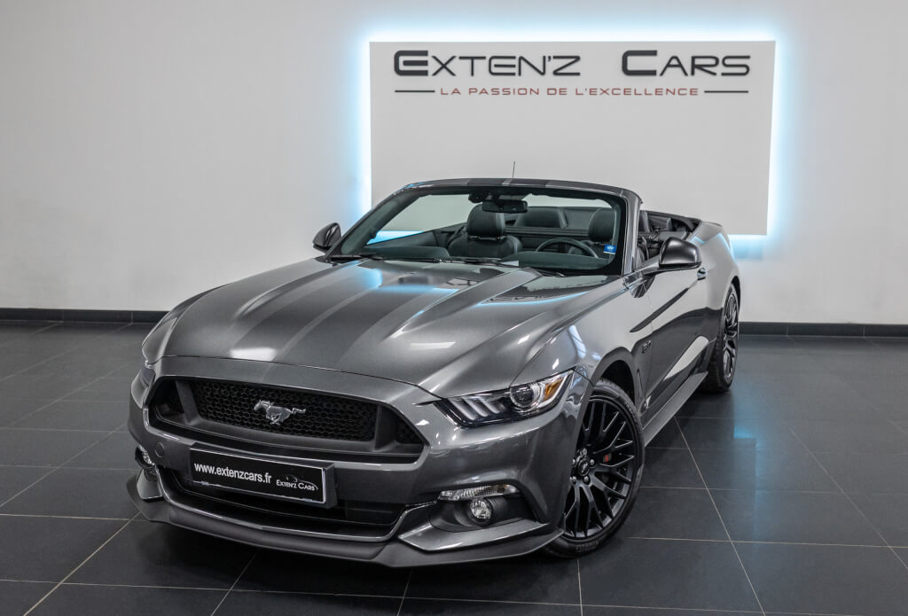 EXTEN’Z CARS vous propose cette séduisante Ford Mustang GT Cabriolet avec son fantastique V8 5.0 Atmosphérique développant 421 CV (33cv), mise en circulation le 12/08/2015 de couleur Gris Magnetic. Cette MUSTANG distille beaucoup de plaisir à ses occupants tout en offrant un rapport prix/plaisir. En particulier sa silhouette bodybuildée, la position de conduite est parfaite et on peut admirer devant soi le long capot bosselé. Prendre les commandes d’un tel engin, aussi imposant par le gabarit que par son histoire, génère des sensations extraordinaires.