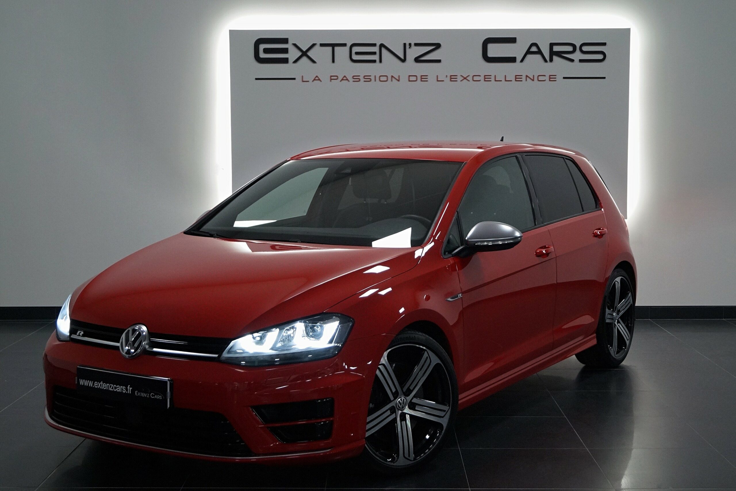 VOLKSWAGEN GOLF (VII) 7 R 2.0 TSI 4Motion développant 300 CV (19cv), mise en circulation le 18/09/2015, dans sa livrée Rouge Tornado. Associée à une boite à vitesse automatique DSG, si vous préférez une conduite plus sportive, il lui suffit de passer en mode manuel à l’aide des palettes de changement de vitesse au volant. Cela dit, question efficacité et performances, la Golf R est un très méchant loup ! Sous une apparence anodine, elle est capable d’enfumer bien des sportives de renom. A l’intérieur, on retrouve bien-sûr la qualité de présentation impeccable des Golf mais avec quelques éléments de personnalisation : un volant siglé R, un tachymètre qui monte jusqu’à 320 km/h, des sièges sport au bon maintien latéral, et quelques placages carbone sur la planche de bord. Le 0 à 100 km/h est annoncé en seulement 4,9 secondes ainsi ses 4 roues motrices lui assurent une sécurité et une efficacité sidérantes.