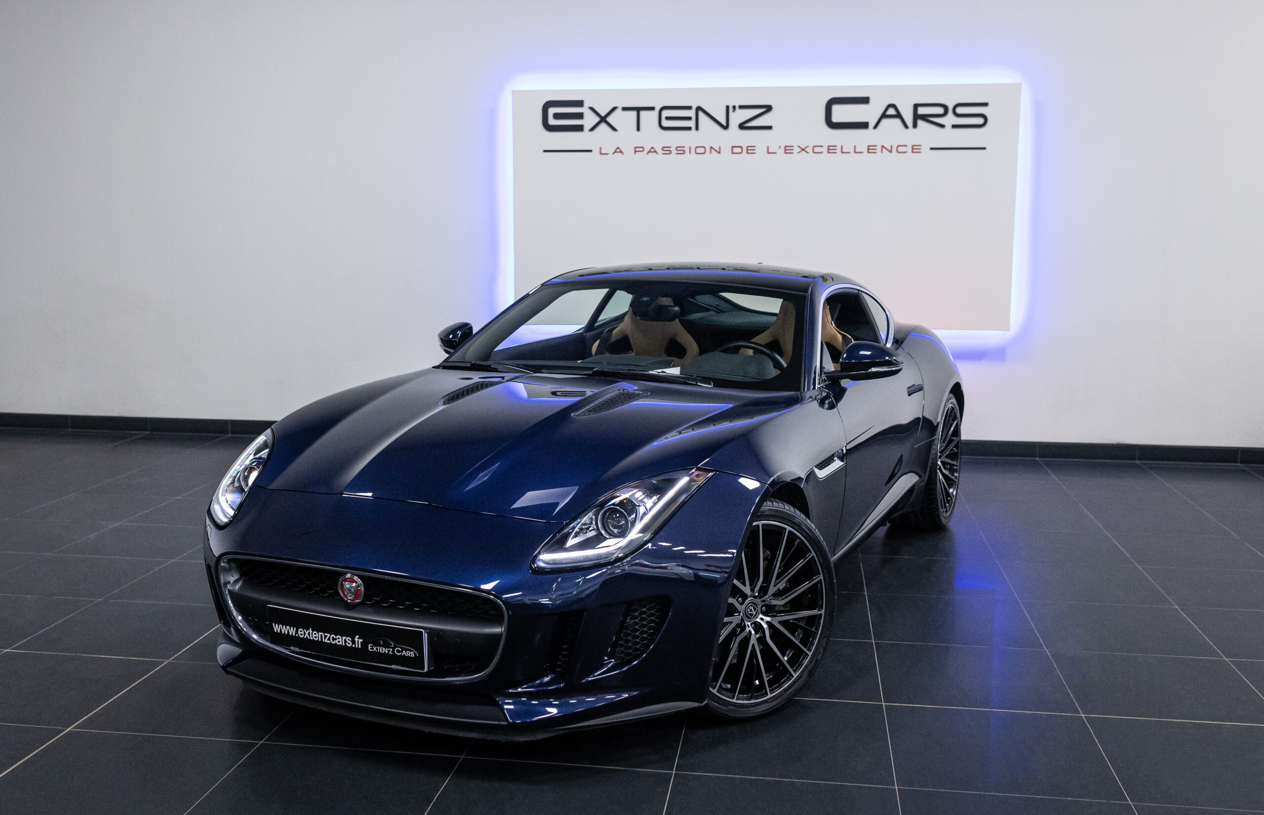 EXTEN’Z CARS vous propose cette magnifique JAGUAR F-Type Coupé 3.0 V6 développant 340 CV (23cv) mise en circulation le 14/08/2015 de couleur Dark Sapphire. Séduisante à l’extérieur, la Jaguar F-Type Coupé l’est tout autant à son bord. Le style est très exclusif, mais aussi très épuré. La position de conduite est irréprochable, d’autant que les sièges offrent de multiples réglages. La Jaguar F-Type est motorisée par un V6 3,0 litres suralimenté de 340 ch. C’est la première fois qu’un V6 aura autant flatté nos tympans. Structure en aluminium, liaisons au sol allégées, et mécaniques affûtées sont au programme. Poignée de maintien destinée au passager, bouton de mode Sport typé aviation, cuirs surpiqués omniprésents sur notre version, Le travail est abouti.