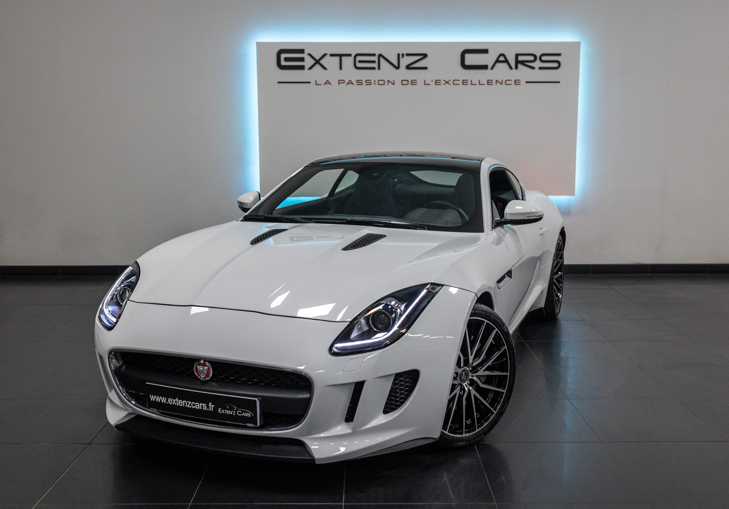 EXTEN’Z CARS vous propose cette magnifique JAGUAR F-Type Coupé 3.0 V6 développant 340 CV (23cv) mise en circulation le 27/10/2014 de couleur Polaris White. Séduisante à l’extérieur, la Jaguar F-Type Coupé l’est tout autant à son bord. Le style est très exclusif, mais aussi très épuré. La position de conduite est irréprochable, d’autant que les sièges offrent de multiples réglages. La Jaguar F-Type est motorisée par un V6 3,0 litres suralimenté de 340 ch. C’est la première fois qu’un V6 aura autant flatté nos tympans. Structure en aluminium, liaisons au sol allégées, et mécaniques affûtées sont au programme. Poignée de maintien destinée au passager, bouton de mode Sport typé aviation, Le travail est abouti.