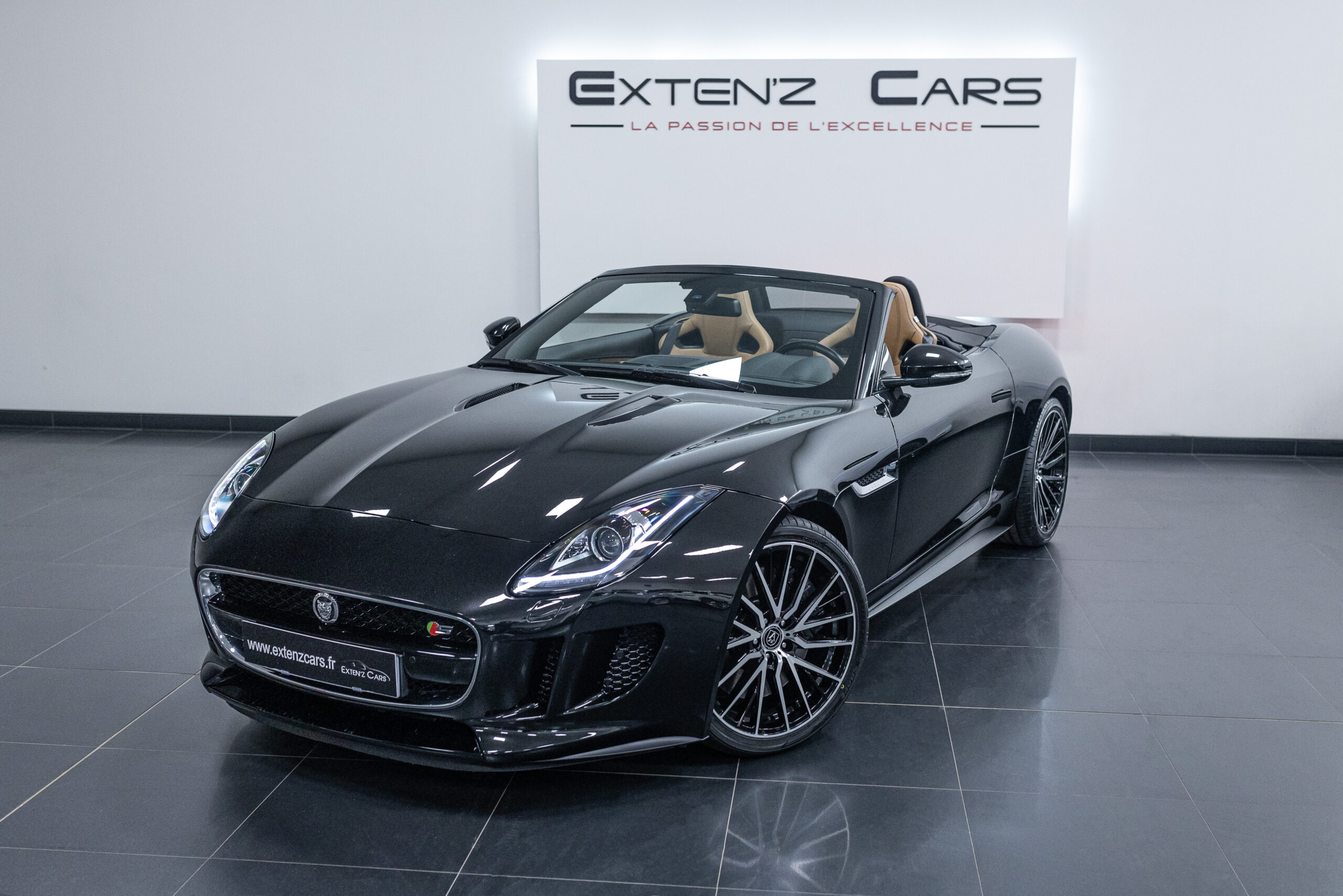 JAGUAR F-Type Cabriolet 5.0 V8 S développant 495CV (40cv) mise en circulation le 29/10/2013 de couleur Ultimate Black. Séduisante à l’extérieur, la Jaguar F-Type Cabriolet l’est tout autant à son bord. Le style est très exclusif, mais aussi très épuré, La position de conduite est irréprochable, d’autant que les sièges Performance offrent de multiples réglages. La Jaguar F-Type S est motorisée par un V8 5,0 litres suralimenté de 495 ch. Bien aidée par sa boîte à 8 rapports, Poignée de maintien destinée au passager, bouton de mode Sport typé aviation, cuirs surpiqués omniprésents sur notre version, Le travail est abouti.