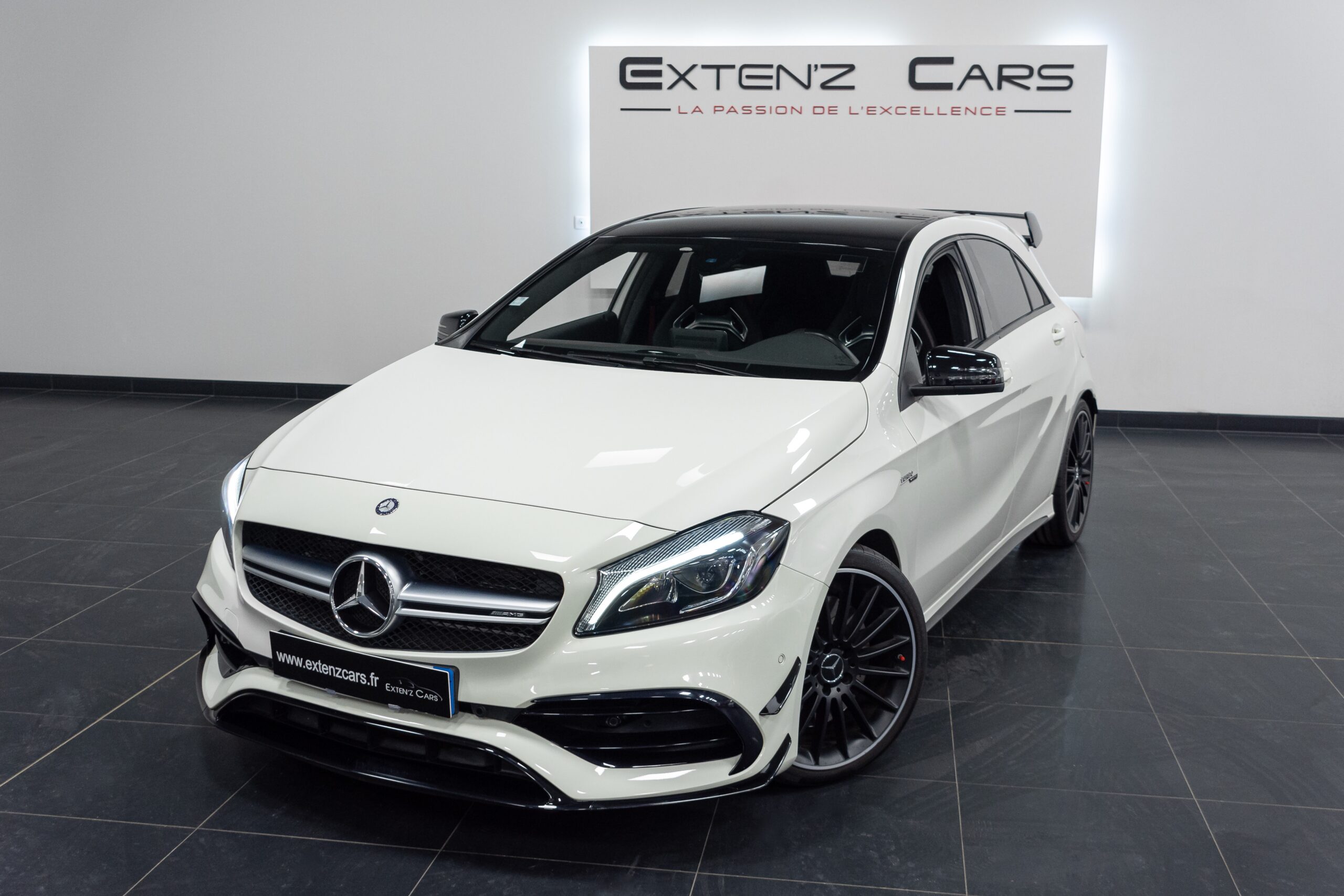 Mercedes Classe A 45 AMG (II) 4Matic développant 381CV (26cv), mise en circulation le 23/11/2015, de couleur Blanc Calcite. Luxe, puissance et couple hors normes, boîte ultra rapide et motricité infaillible sont les principaux ingrédients de la Mercedes A45 AMG. La position de conduite est excellente et l’espace à l’arrière est impressionnant, même lorsque deux grands gabarits se succèdent à l’avant et à l’arrière. Les excellents sièges baquets Performance AMG n’entament pas non plus l’habitabilité. La présentation et l’ambiance se montrent chaleureuses, avec un dessin original de la planche de bord