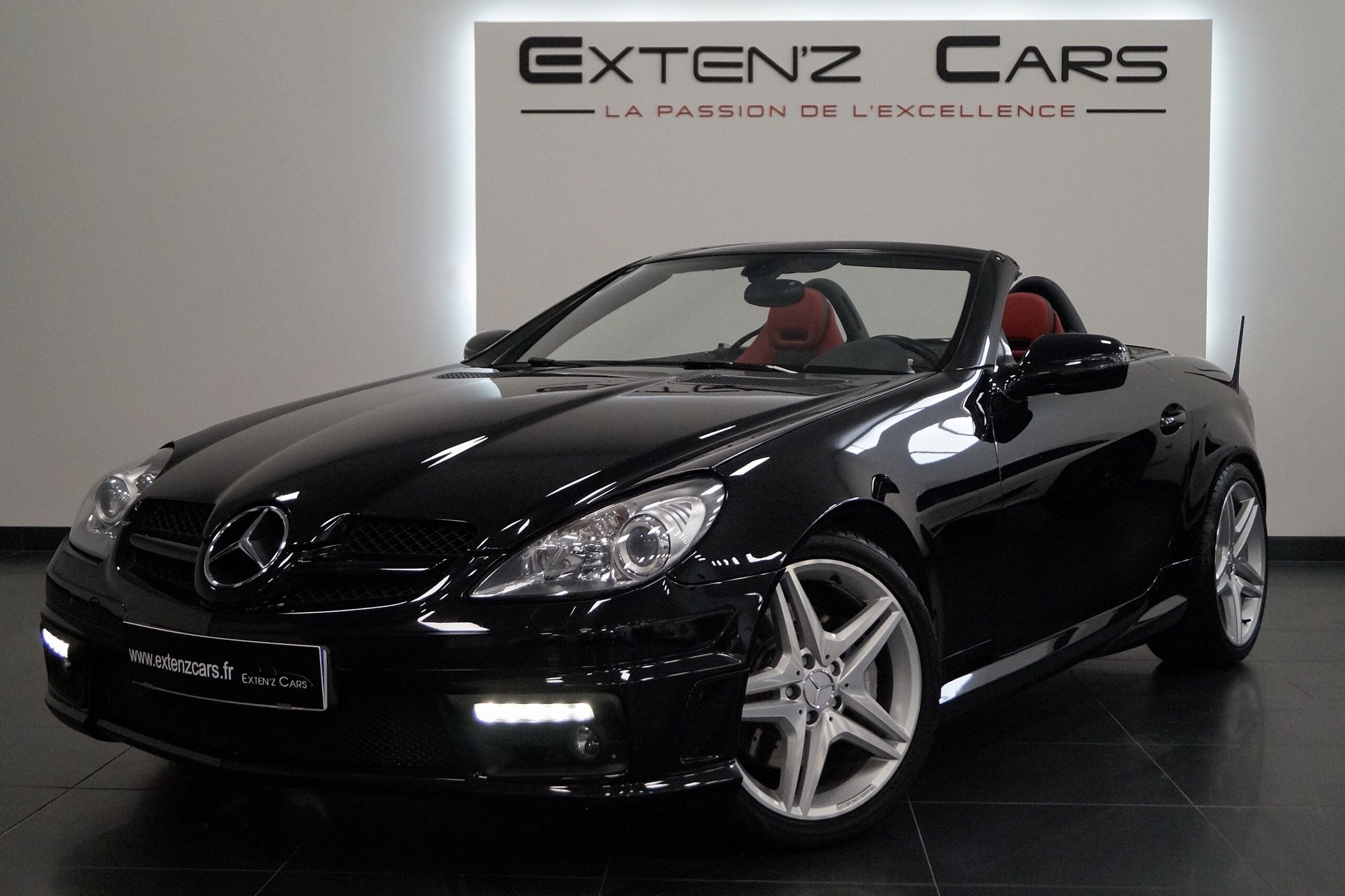 Mercedes-Benz SLK 350 Roadster (R171) avec son fantastique V6 de 3,5 litres associé d’une sonorité exceptionnelle grâce à son échappement AMG, qui délivre 305 CV (21cv), mise en circulation le 29/05/2009, de couleur Noir Obsidienne. Une gueule, un moteur et un châssis, d’une polyvalence rare, ce roadster SLK fait honneur au blason Mercedes !