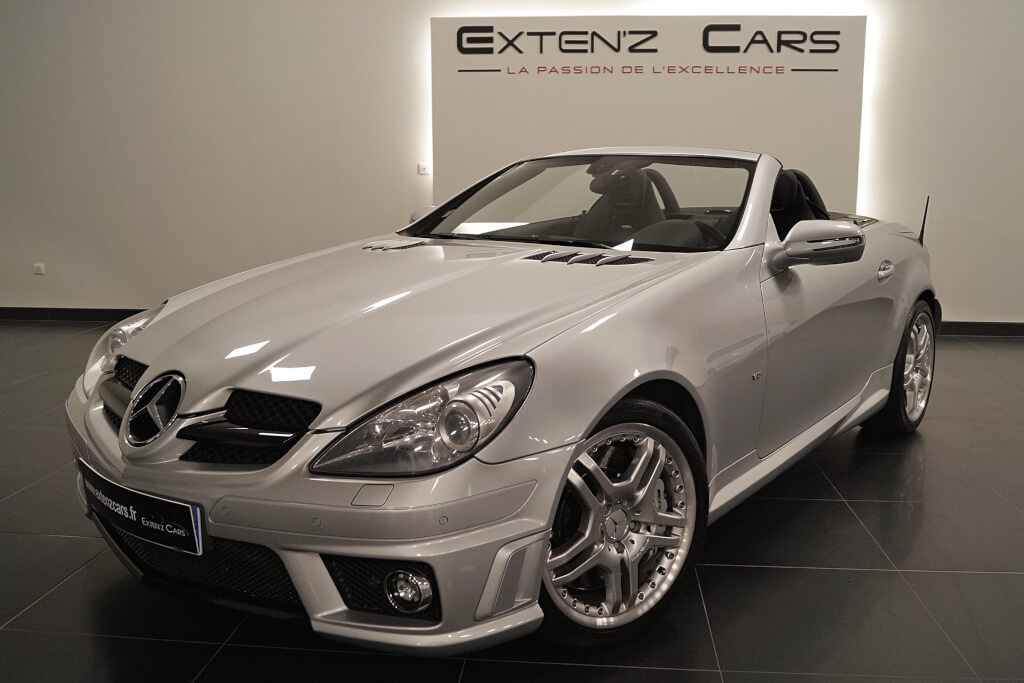 Mercedes-Benz SLK 55 AMG Roadster (R171) avec son fantastique V8 atmosphérique de 5,5 litres en voie de disparition et associé d’une sonorité exceptionnelle.. développant 360 CV (27cv), mise en circulation le 14/05/2009, de couleur Argent Iridium. Une gueule, un moteur et un châssis, d’une polyvalence rare, ce roadster SLK 55 AMG R171 fait honneur au blason Mercedes ! Plus GT que supersportive, le SLK AMG n’en demeure pas moins époustouflant en performances et ultra agréable en conduite coulée.
