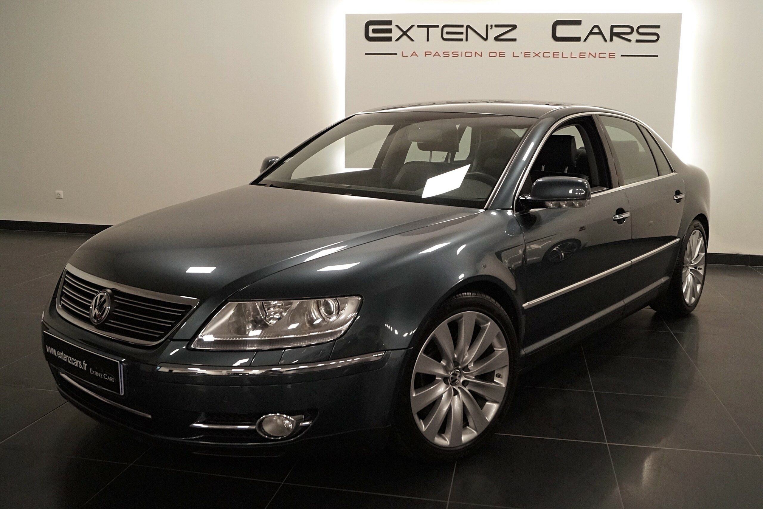 VOLKSWAGEN Phaeton V6 3.0 TDI 4Motion développant 240 CV (16cv) mise en circulation le 06/02/2008 de couleur coucou grey métallisé. Associée à une boite à vitesse automatique, si vous préférez une conduite plus sportive, il lui suffit de passer en mode manuel pour disposer alors des rapports fixes. Au quotidien, les quatre roues motrices permettent plus aisément de bousculer la Phaeton et procurent en toutes circonstances une sécurité et un confort de motricité accrus. La force de la Phaeton c’est qu’elle est portée par une philosophie, par un parti pris qu’elle ne trahit jamais. Cela tient en trois mots : Luxe, espace, souplesse. Le luxe est omniprésent. La qualité de finition, le soin apporté aux moindres détails et la réflexion poussée de presque chaque aspect sont tout bonnement impressionnants. A coups de chrome rutilants, de bois précieux et de cuir pleine fleur, la Phaeton semble vouloir vous dire que « rien n’est trop beau pour vous », et qu’il ne faut « surtout pas vous fatiguer ».