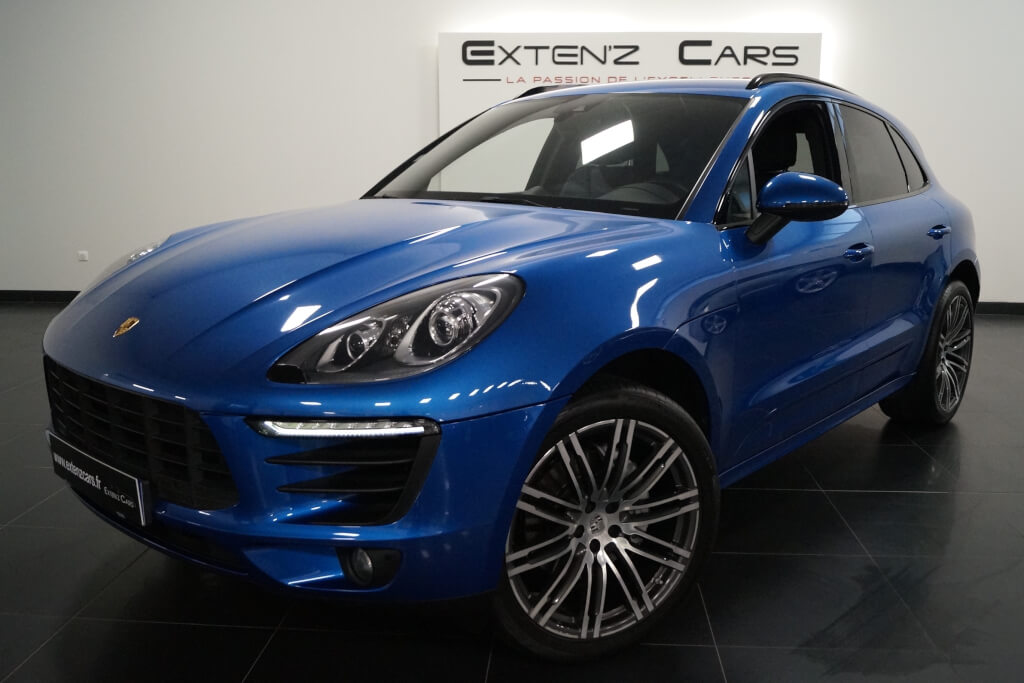 PORSCHE MACAN Le modèle S doté du 3.0i V6 Turbo qui délivre 340 CV (23CV), mise en circulation le 24/09/2014 de couleur Bleu Saphir. Associée à une Transmission 7 vitesses – transmission à double embrayage (PDK), si vous préférez une conduite plus sportive, il lui suffit de passer en mode manuel à l’aide des palettes de changement de vitesse au volant pour disposer alors des sept rapports fixes. A bord, la console centrale accentue cette ambiance de cockpit d’avion avec tous les boutons qui tombent sous la main sans lever le coude, l’ensemble est très simple à utiliser. Le Macan possède en effet de vraies aptitudes en tout-terrain. Le PTM (Porsche Traction Management) veillent à assurer une motricité idéale en tout-terrain. Le V6 turbo émet une belle sonorité au démarrage et par la suite si vous êtes en mode sport. Très souple à bas régime, il ne se contente pas d’être linéaire et semble apprécier les montées vers la zone rouge. Les performances sont presque sportives avec moins de 6 secondes pour le 0 à 100. Côté châssis, notre modèle avec suspension pneumatique optionnelle est confortable malgré les roues de 21 pouces elles aussi optionnelles. Vous apprécierez sa puissance confortablement à bord d’un V6 envoutant.