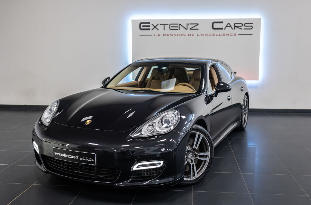 EXTEN’Z CARS vous propose cette sublime et imposante PORSCHE PANAMERA Turbo 4.8 V8 développant 500 CV (41cv), mise en circulation le 09/12/2009 de couleur Noir Basalte. Associée à une boite à vitesse PDK à 7 rapports, si vous préférez une conduite plus sportive, il lui suffit de passer en mode manuel à l’aide des palettes de changement de vitesse au volant pour disposer alors des sept rapports fixes. A bord, la console centrale accentue cette ambiance de cockpit d’avion avec tous les boutons qui tombent sous la main sans lever le coude, l’ensemble est très simple à utiliser. La Panamera est beaucoup plus belle en personne qu’en photos. Et puis une fois au volant, on oublie rapidement nos préjugés sur le design…